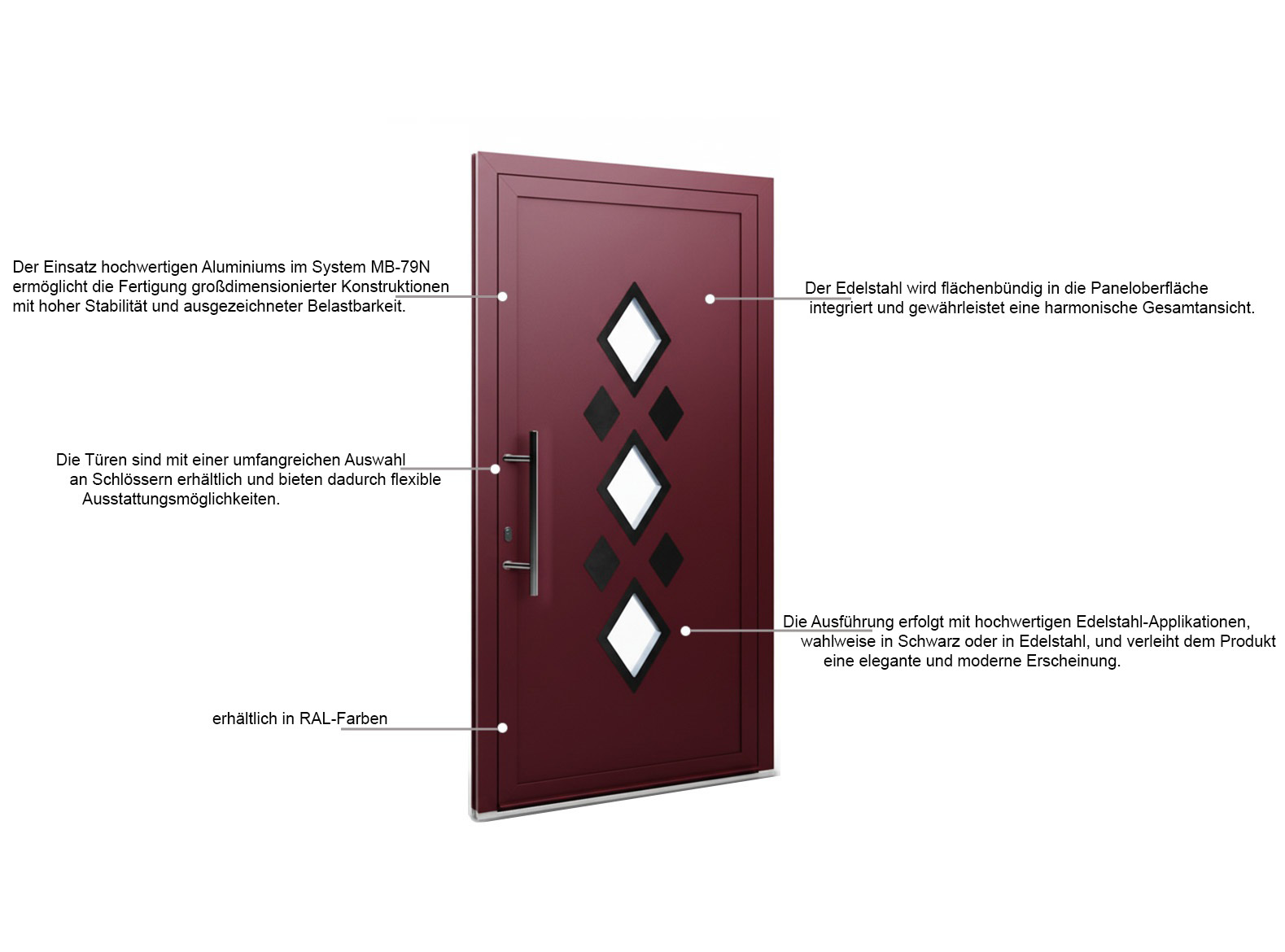 Zusätzliche Optionen bei Verwendung mit Aluminiumtüren: