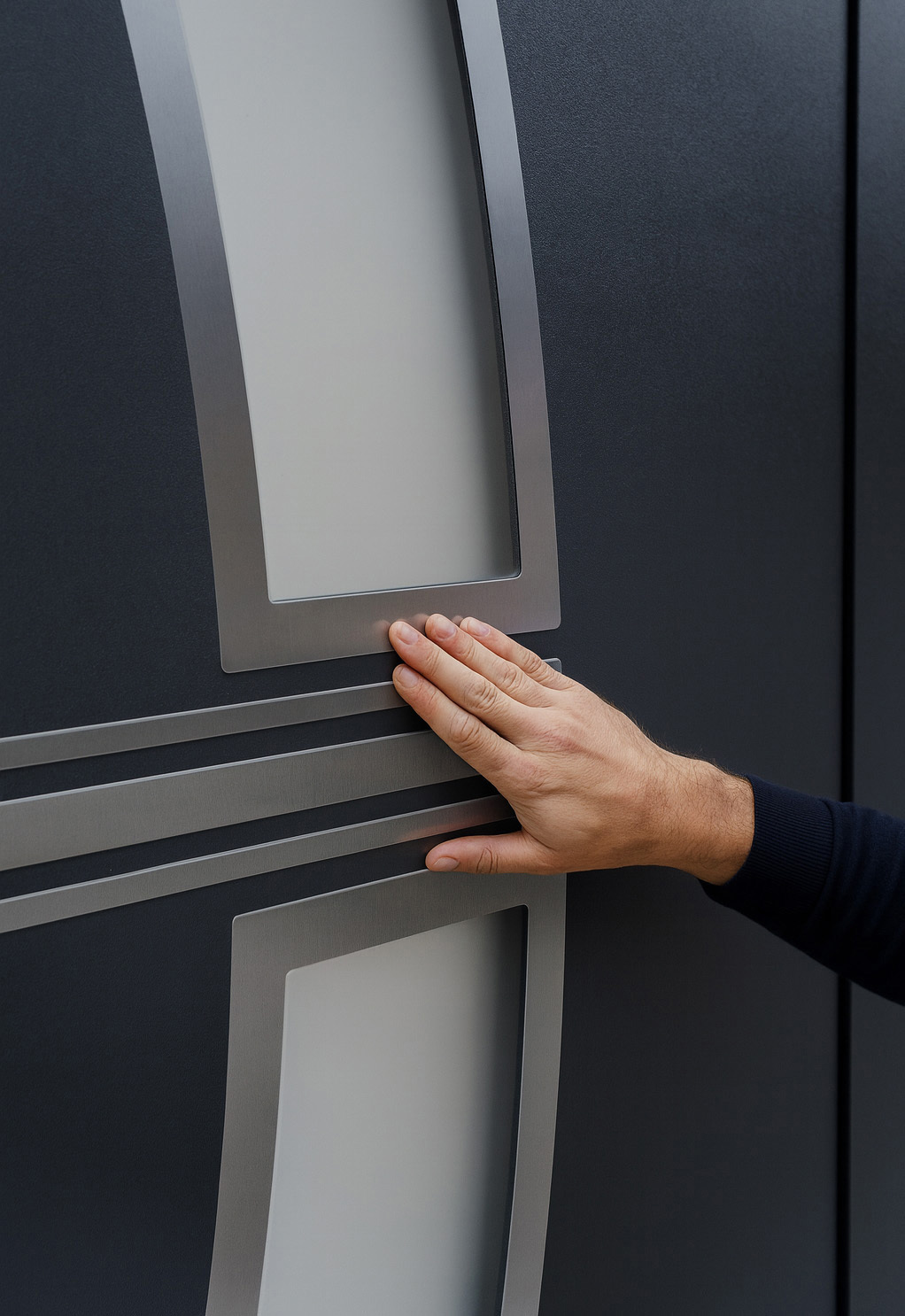 Die Despiro-Türen überzeugen durch ihre elegante, flächenbündige Ausführung – innen wie außen. Sowohl die Paneelfüllung als auch die Applikationen schließen bündig mit dem Türblatt ab und schaffen so ein harmonisches, modernes Erscheinungsbild. Diese beidseitig flächenbündige Konstruktion steht für höchste Präzision, Designklarheit und exklusive Verarbeitung.