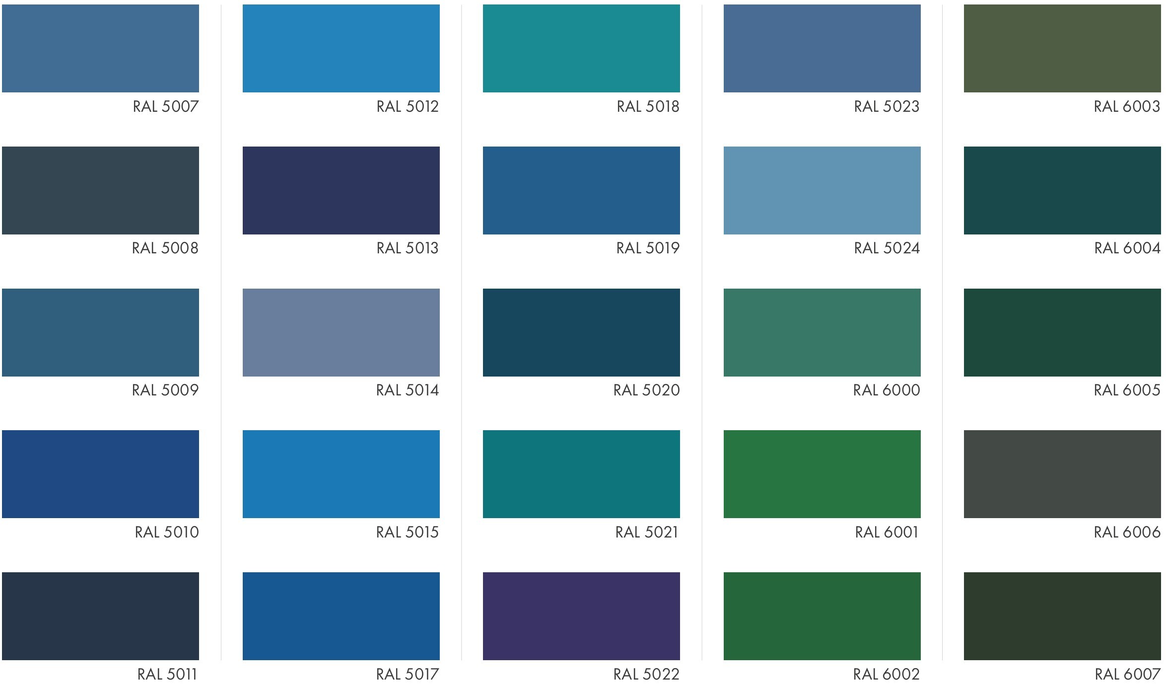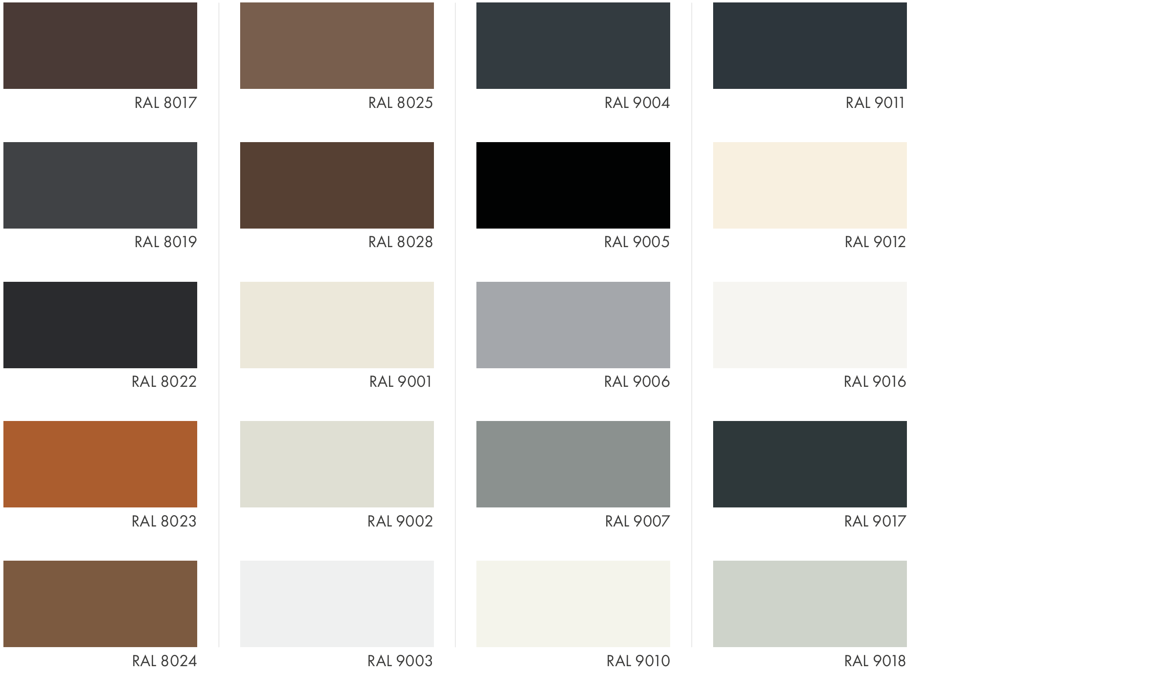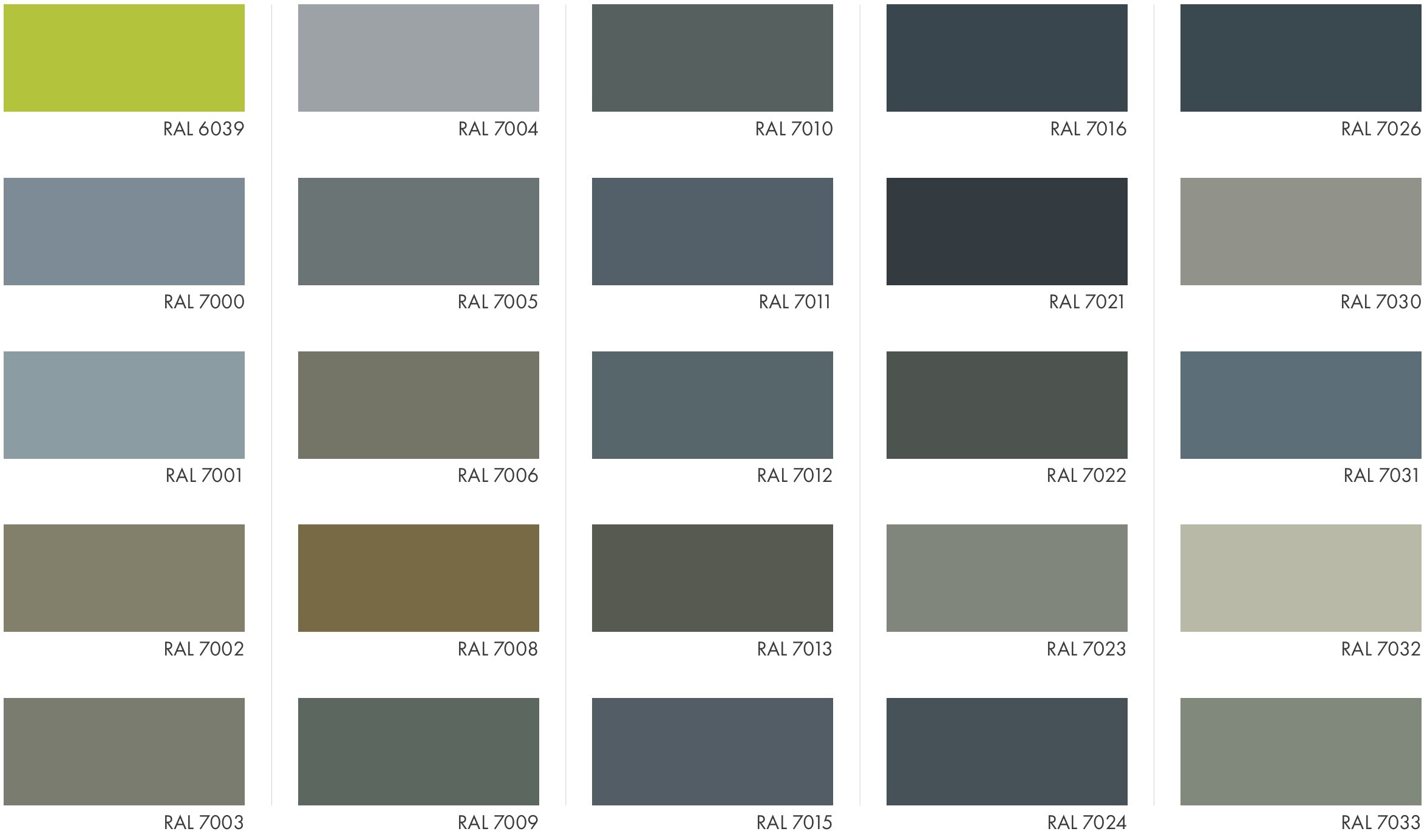 Bitte wählen Sie Ihre gewünschte RAL-Farbe – die Tür kann in jedem gewünschten Farbton individuell hergestellt werden.