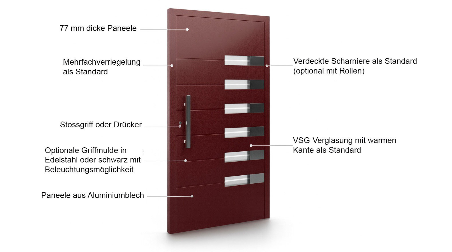 Zusätzliche Optionen bei Verwendung mit Aluminiumtüren: