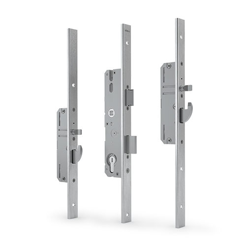 5-Punkt-Verriegelung, ausgestattet mit einem Hauptverschluss mit Soft-Lock-Falle und zwei Kassetten mit Soft-Lock-Fallen und Haken. Wenn die Tür geschlossen ist, drücken drei Riegel die Tür gegen den Rahmen. Wenn das Schloss mit dem Schlüssel verschlossen ist, werden zusätzlich zwei Haken ausgezogen.Die Verriegelung entspricht den Sicherheitsanforderungen der SKG. Es kann mit einem Schlüssel oder einem Drücker bedient werden.